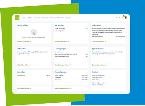Wichtige Unterlagen, Genehmigungen oder schulische Dokumente können einfach digital eingesehen und verwaltet werden.