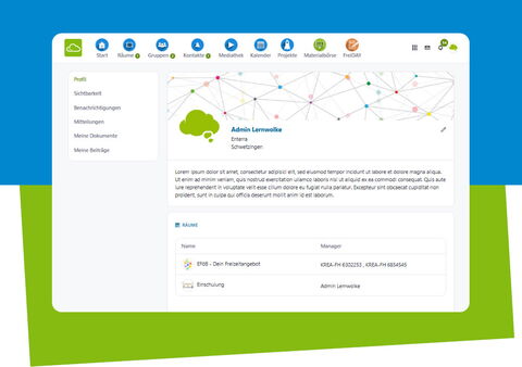 Jeder Nutzer erhält einen persönlichen Bereich zur sicheren Ablage privater Dokumente und Zugriff auf individuelle Übersichten über Aufgaben, Zertifikate oder Lernfortschritte.